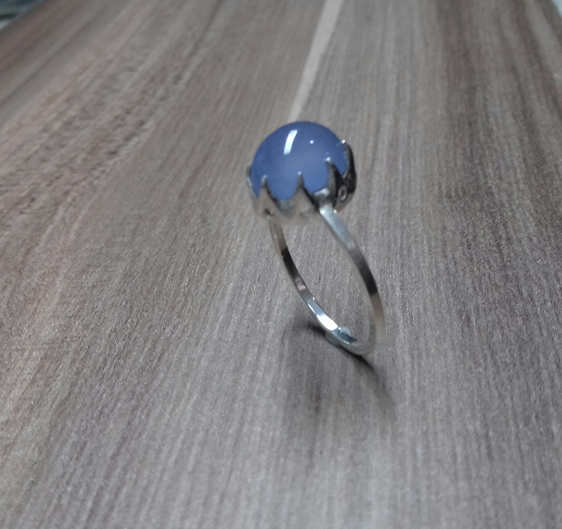 Anel de pedra Calcedônia lilás azulada medidas 10x8m.m, feito na prata 950k peso de 2.1 gramas na medida 19 no valor de R$95,00